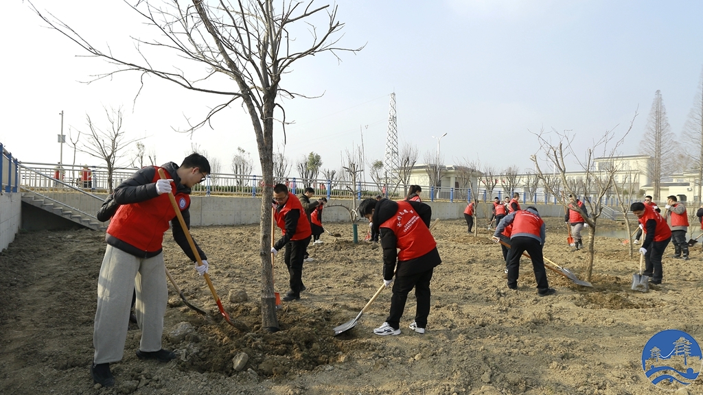 活动现场气氛热烈有序,大家分工明确、默契配合,有的挥锹铲土、有的扶苗扶正、有的培土压实、有的浇水灌溉,每一个环节都认真细致、一丝不苟,充分展现了总渠人务实担当、昂扬向上的精神风貌。大家不怕脏、不怕累,躬身实干、干劲十足,在欢声笑语中传递绿色希望,用汗水浇灌生态新绿,经过一下午的辛勤劳作,一批新栽的树苗整齐挺立在总渠岸边,迎风吐绿、生机盎然,为初春的渠岸增添了一抹亮丽的绿色风景线。